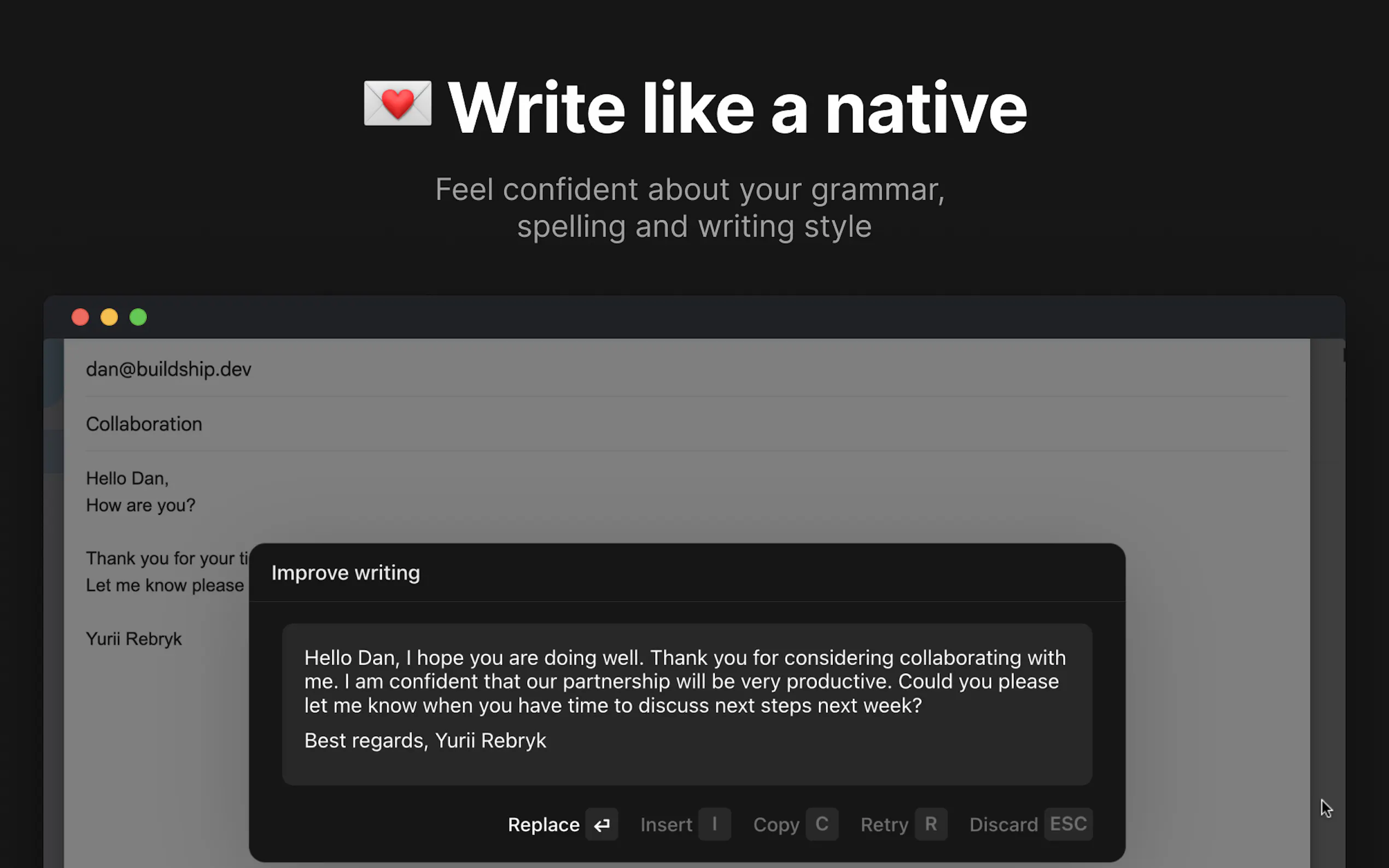 1. Writing Enhancement: By pressing Cmd/Alt + J while composing an email, ChatGPT improves your writing by offering suggestions for grammar corrections, spelling errors, and enhancing your overall writing style.