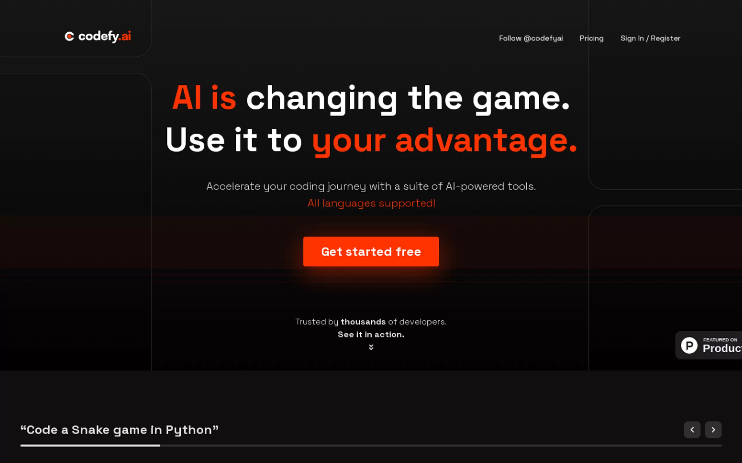 1. AI 驅動的工具:codefy.ai 提供一系列 AI 驅動的工具,旨在協助開發人員進行編碼。這些工具利用先進的演算法和機器學習技術,自動化重複性工作,建議程式碼改進,並提供智慧化解決方案。
