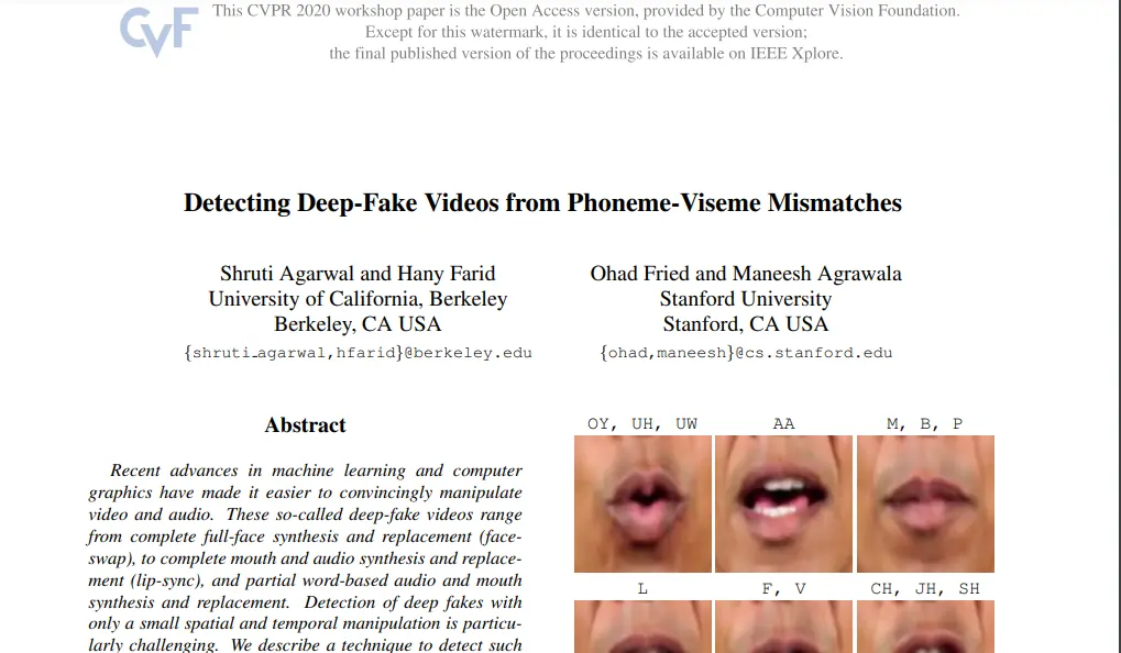 The Deepfake Detection Using Phoneme-Viseme Mismatches is a groundbreaking technique developed by Stanford University and the University of California. It detects artificial facial features by analyzing inconsistencies between visemes and spoken phonemes, enabling the detection of subtle manipulations in deepfake videos. With high accuracy rates, this technique is a reliable ally in combating deepfake manipulation.