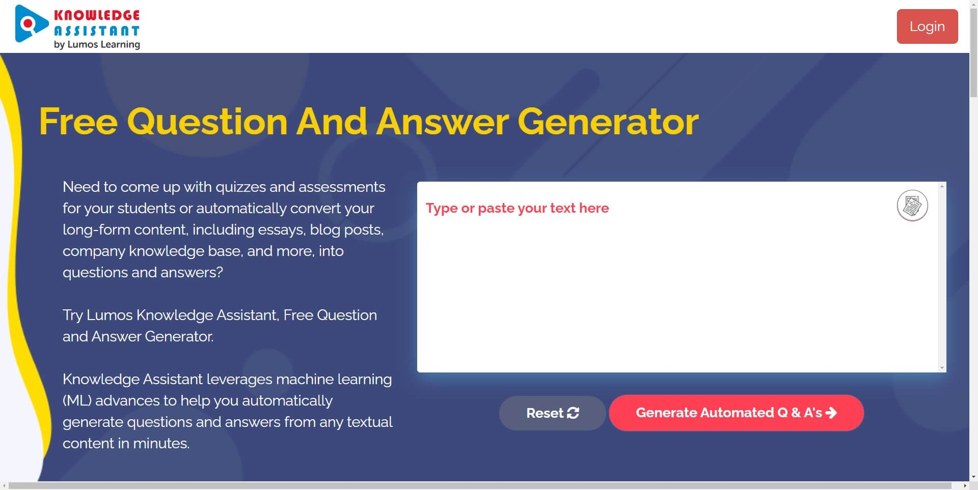 Shifting our focus to the educational domain, the Lumos Knowledge Assistant emerges as a beacon of innovation. This free-to-use platform utilizes advanced machine learning techniques to generate questions and answers from textual content within minutes. Its primary forte lies in creating quizzes and assessments, transforming long-form content into engaging Q&As. While it excels in elevating the learning experience, Lumos does face limitations in customization, emphasizing the need for continuous evolution in AI tools.