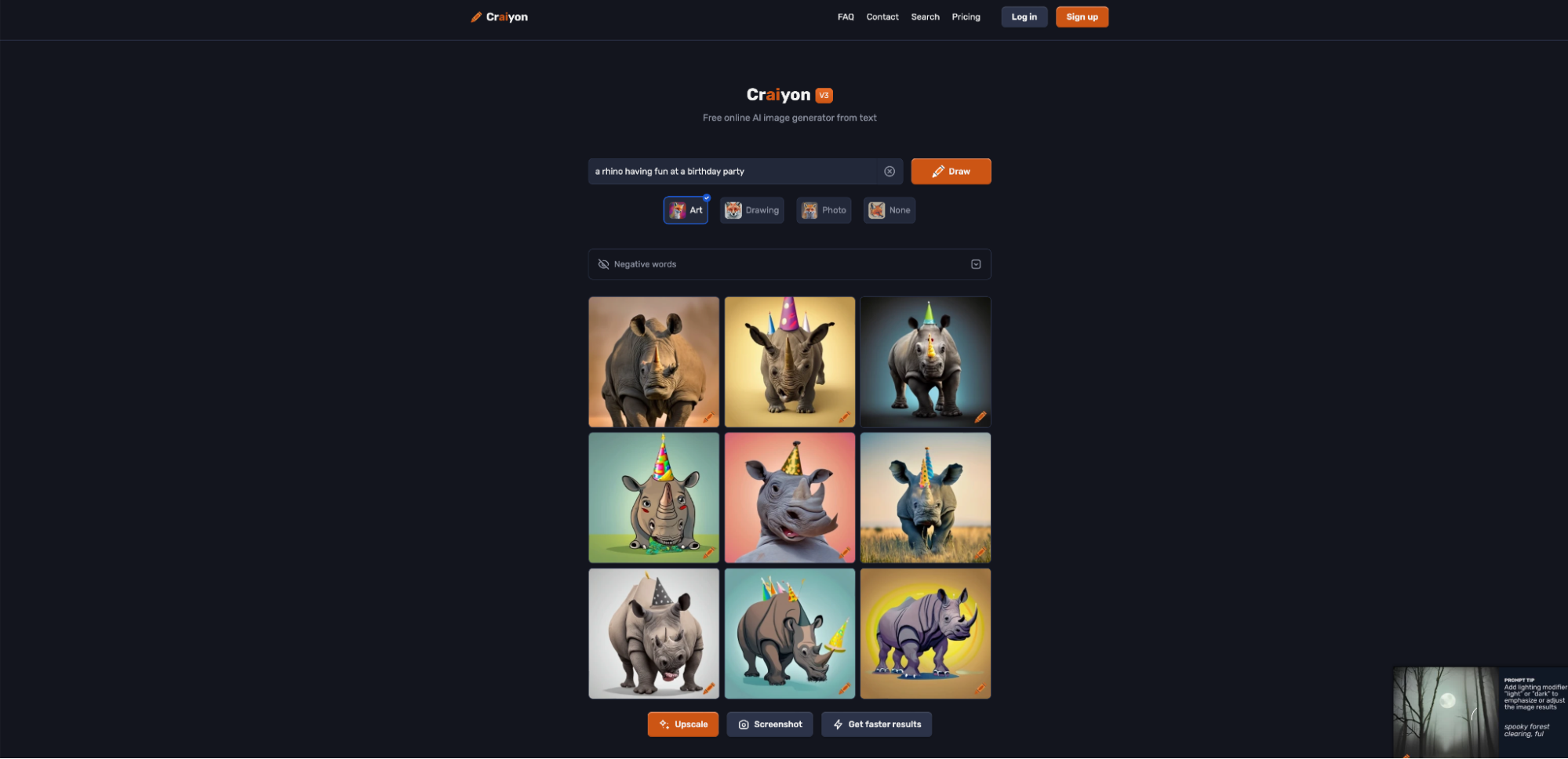 Craiyon is another web-based AI drawing generator that allows you to create stunning art effortlessly. It offers a fun and educational functionality, along with a simple and intuitive user interface. However, it also requires an account or email login to use, and some users have reported bugs and glitches.