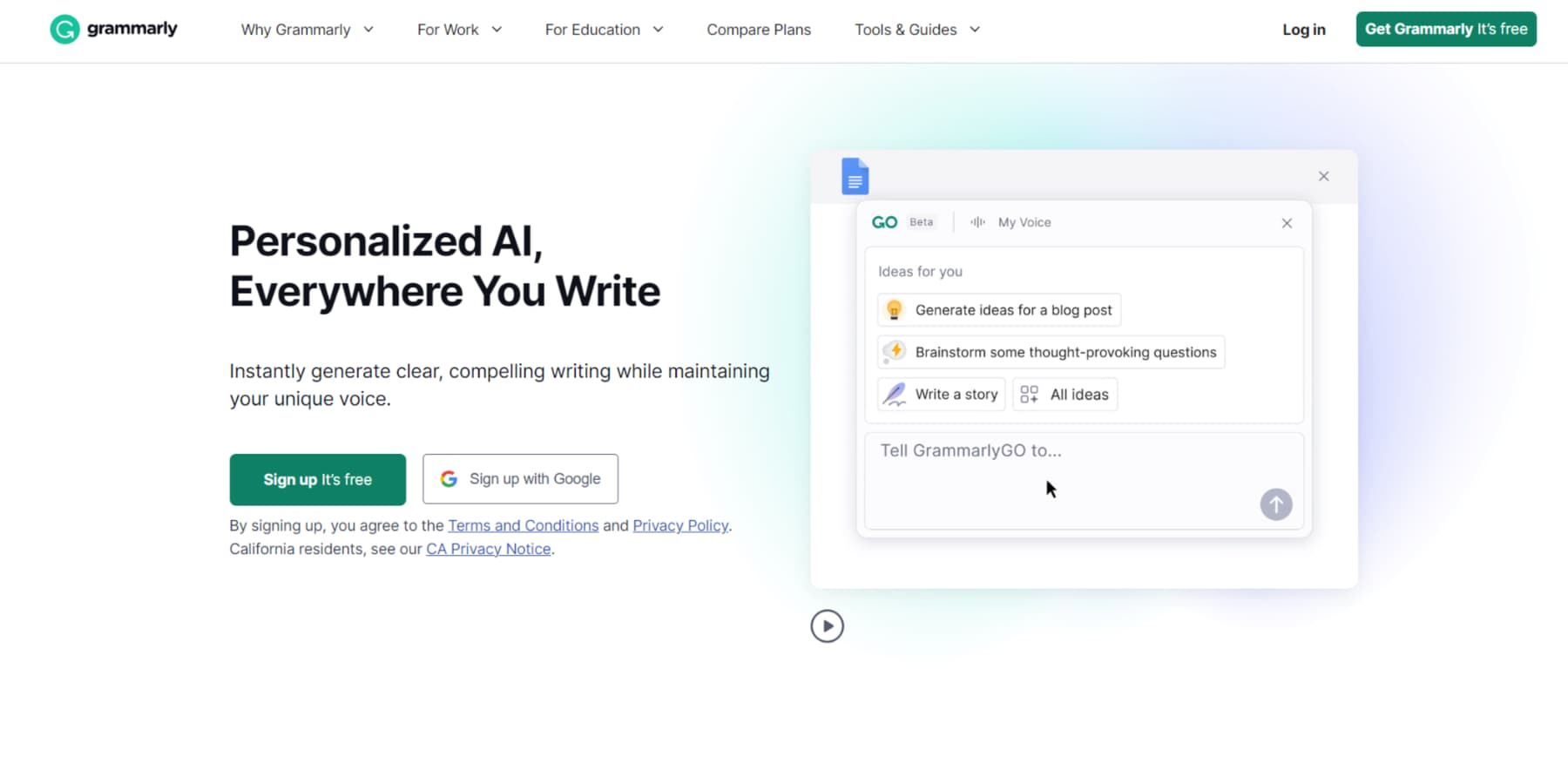 Grammarly remains a popular choice for its comprehensive checks and user-friendly interface. It's powered by GrammarlyGO, an AI-based writing assistant that adapts to your personal style and provides real-time feedback. It also includes a plagiarism checker, ensuring the originality of your content.