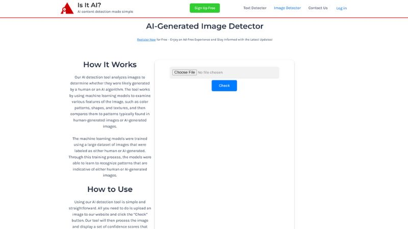 Simplicity:Just upload your image, click "Check," and let Is It AI provide a clear verdict.