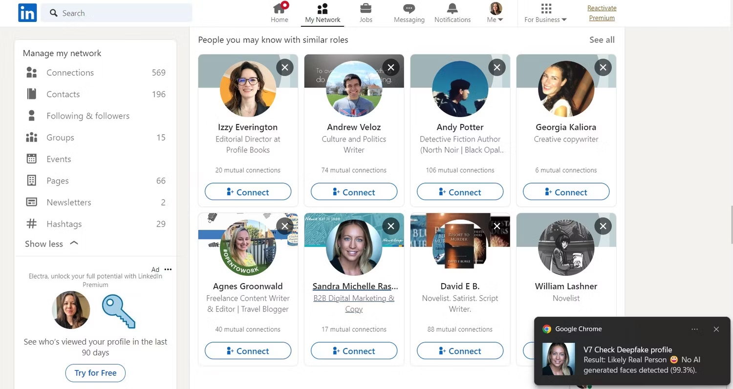 Plugin Convenience:As a Chrome extension, it specializes in scanning StyleGAN images to detect fake social media profiles.
