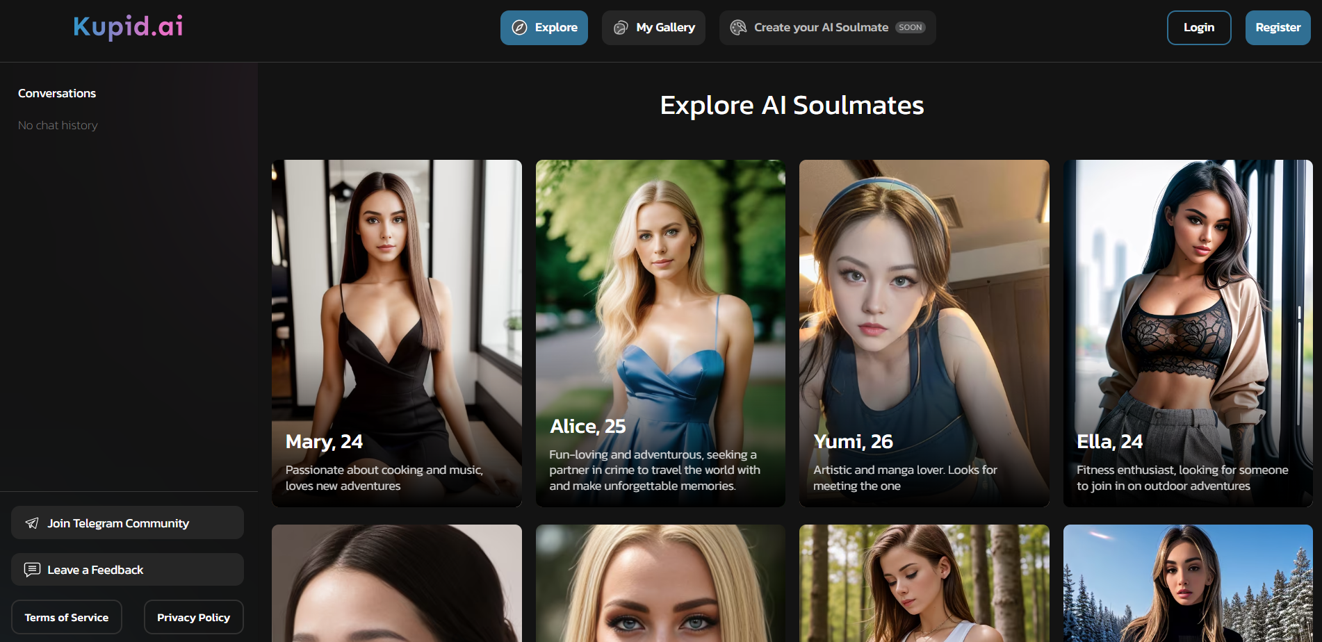 Kupid AI is a platform designed for virtual relationships, offering AI-driven chat experiences. Users can engage with AI characters, simulating real conversations and fostering deep, immersive dialogues. Kupid AI provides lifelike chat experiences, a virtual dating environment, meaningful conversations, and a freemium model with basic features available for free and premium options for enhanced experiences.