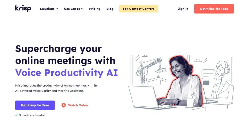 Krisp is an online audio enhancer that improves the quality of your online meetings by filtering out background noises with no delays. With features like AI meeting assistant and AI Accent Localization, Krisp offers solutions to enhance speech quality for individuals working in quiet settings. Along with background noise cancellation, Krisp also provides unlimited transcription, HD noise cancellation, and unlimited meeting note storage. The pricing plans include a free plan, a pro plan for $8 per month with additional features, and an enterprise plan.