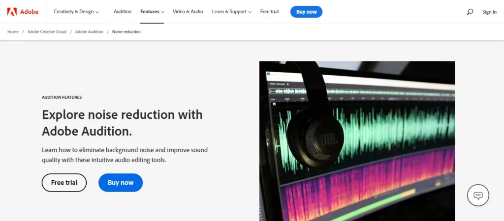 Adobe Audition is a top Digital Audio Workstation (DAW) used in the industry for creating, mixing, editing, and restoring audio content. It includes features like multitrack, waveform, and spectral display. The software aims to streamline video production workflows and audio finishing. One notable feature is its Noise Reduction technology, which allows users to easily eliminate background noise and improve sound quality using intuitive tools. Adobe Audition also offers AI-powered audio editing capabilities, such as audio restoration and noise reduction, helping users enhance the quality of their audio files. Its seamless integration with other Adobe products makes it a comprehensive solution for audio editing and production.