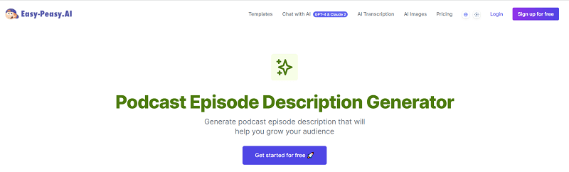 Easy peasy.ai stands out with its extensive template library, offering over 100 options to match different content types and styles. It helps craft compelling episode summaries, attracting more listeners. The tool's pricing ranges from a free plan with limited words to various paid options for more extensive needs.