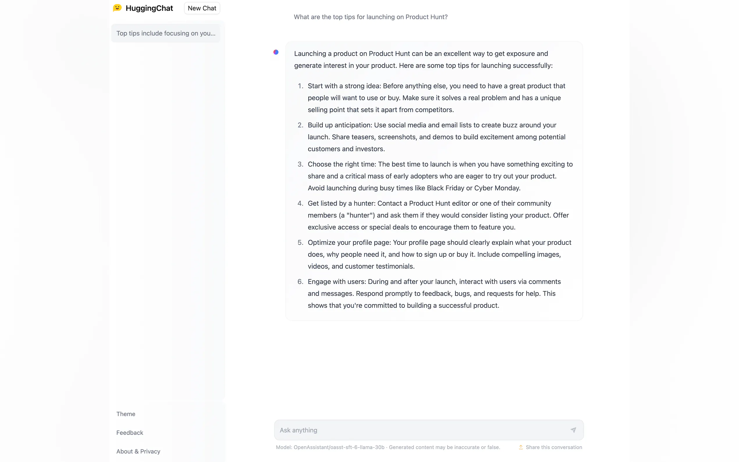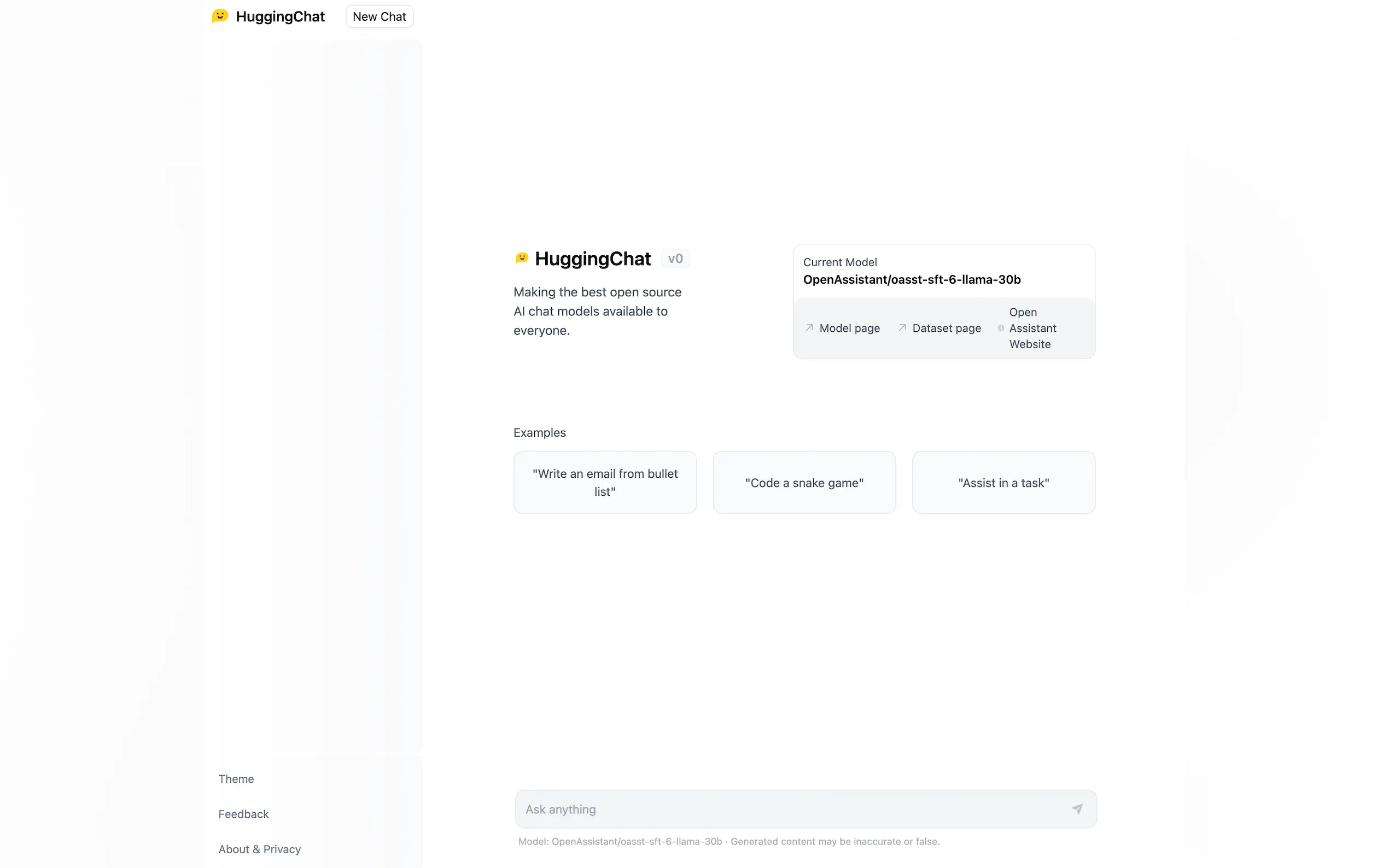 Explore HuggingChat, the open-source AI chatbot that lets you contribute and enhance its source code. Experiment with AI capabilities today!