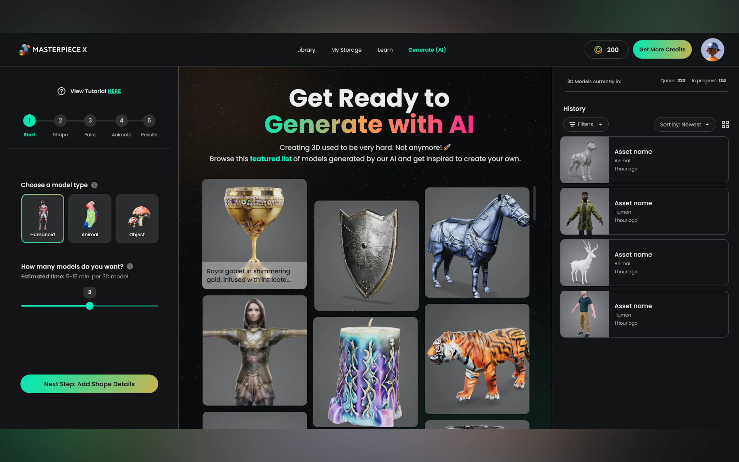 Whether you're a seasoned 3D artist, a game developer, or a creative agency, Masterpiece X is here to revolutionize how you create 3D models. Say goodbye to tedious manual modeling and hello to a streamlined, intuitive platform that turns your ideas into fully-textured, export-ready 3D assets—in just minutes.