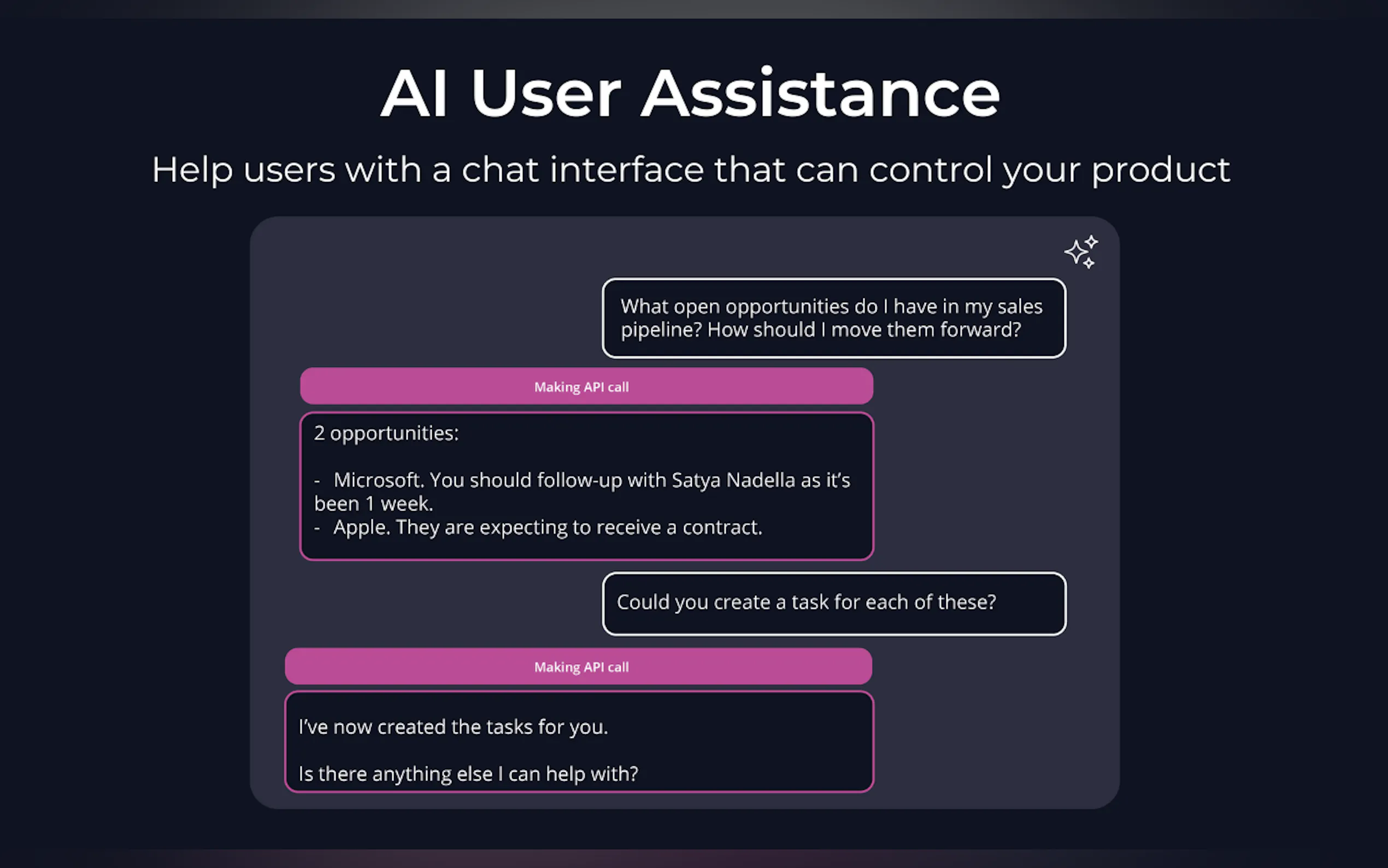 Building a truly intelligent AI assistant for your software product is complex and time-consuming, often requiring a dedicated AI team and months of development. What if you could empower your users with natural language capabilities that interact with your product's full functionality, gain deep insights, and get instant help – all while saving your engineering team significant time?