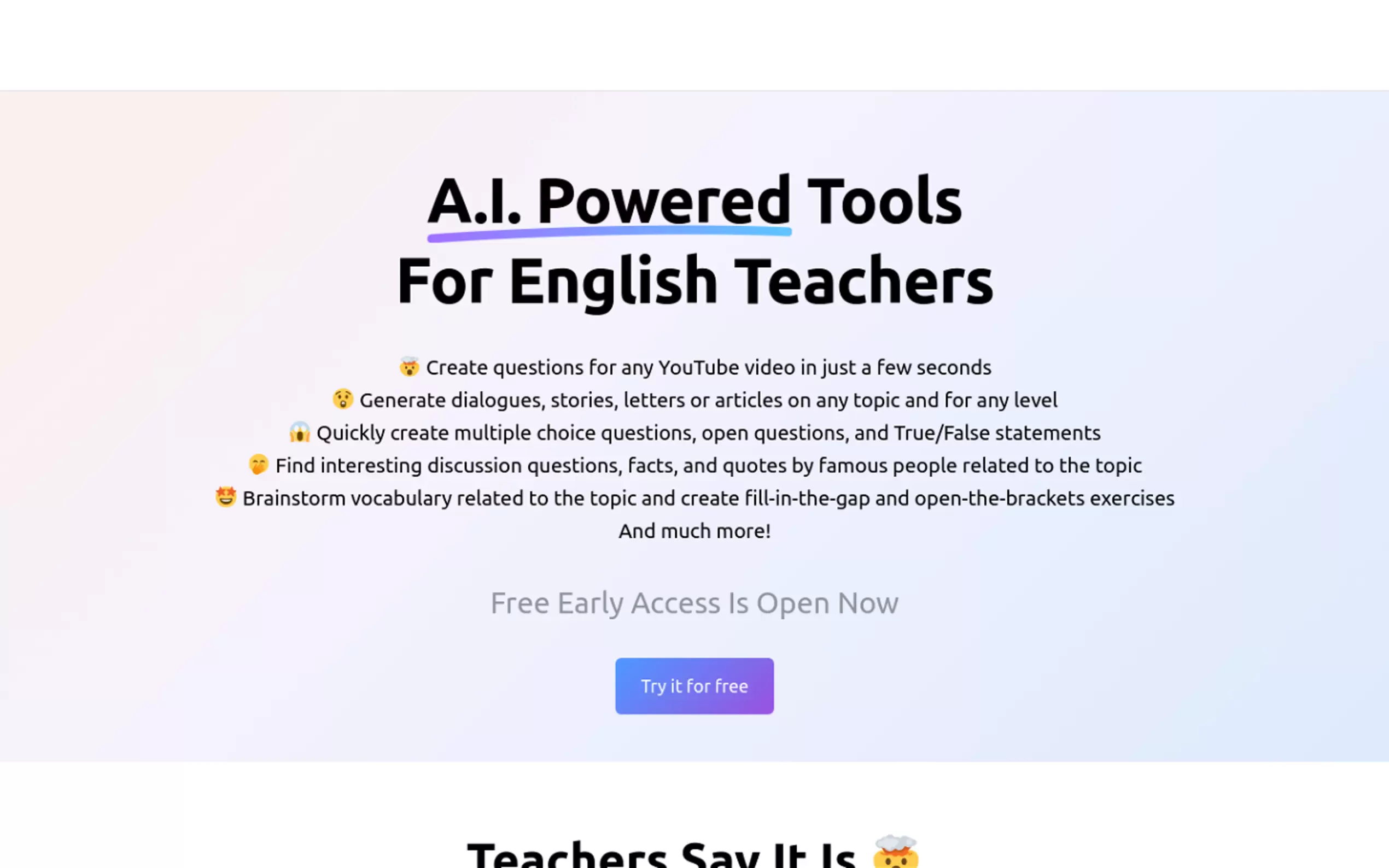 Teacherbot, the AI for educators! Create 40k+ resources, 40+ tools. Fast, for all levels & subjects. Plan lessons, make quizzes. Free acct. Less stress, more teaching time!