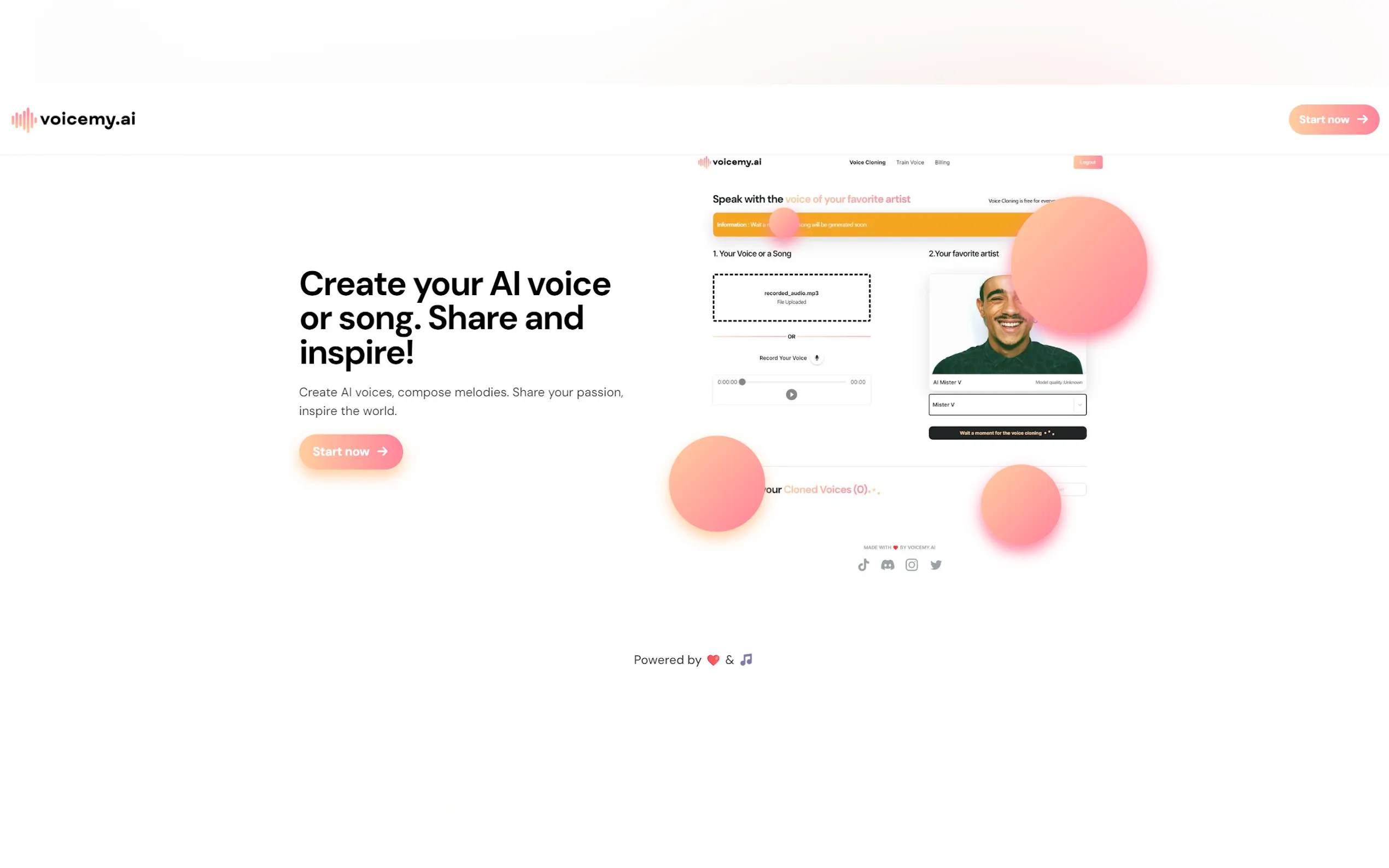 Voicemy.ai provides the essential tools you need to explore the exciting possibilities of AI voice and song creation. Whether you're cloning voices, training your own model, or anticipating the upcoming text-to-voice feature, you have the power to create, share, and inspire. Explore how Voicemy.ai can amplify your creative expression today.